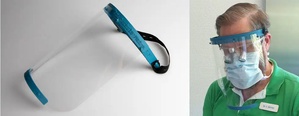 - Das in unserem 3D Lab der Modellbauwerkstatt Innenarchitektur 3D gedruckte Schutzvisier baut auf dem Design des 3D Druck Unternehmens Prusa aus Tschechien auf. Die Maske ist besonders gut für medizinische Einrichtungen geeignet, da genug Platz ist für Zusatzbrillen und eine weitere Mund-Nasen-Bedeckung.