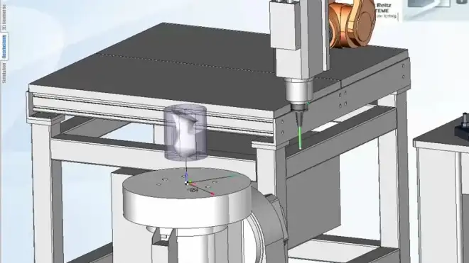 CAD CAM Sprutcam – KonturfräsenFräsen von offenen und geschlossenen Geometrieen direkt auf dem 3D Körper, oder an der abgelösten Geometrie. Radiuskorrektur kann beliebig gewählt werden. | ![]() |